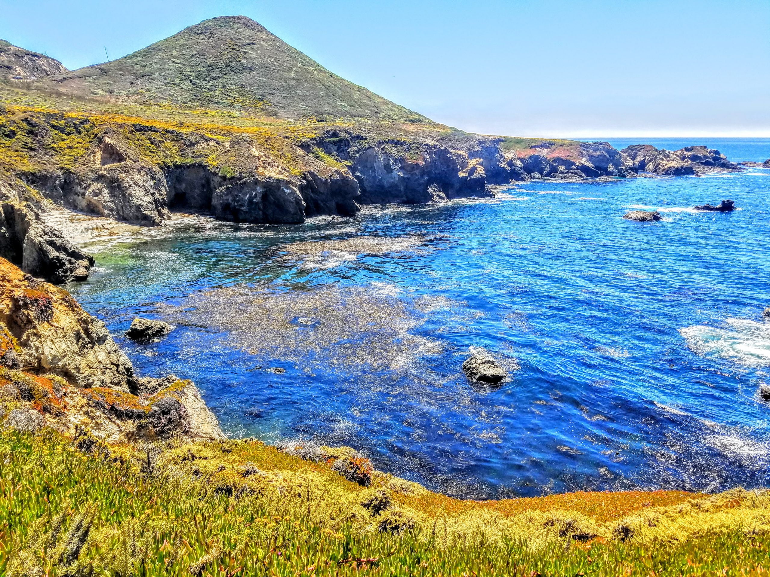 If you desire to encounter one of the nigh beautiful cliff faces in the world, head to Big Sur in the springtime. The cliffs leading up to the sea are dotted with blooming wildflowers, the tide pools below are full of algae growth, and the crashing waves give the unabridged scene a quiet that is almost impossible to describe.